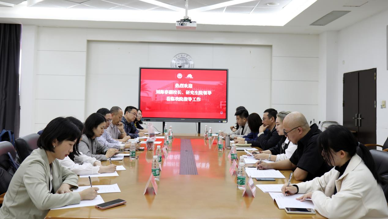 在听取学院领导的汇报后,刘海春副校长对学院艺术硕士相关工作给予充分肯定,并在研究生生源、师资队伍建设、国际化项目打造等方面提出了建设性的建议与指导。