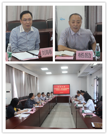 4月26日下午,校党委常委、副校长刘海春带领研究生院院长杨励,副院长吴珊、蒋涌,科长胡秋红、曾颖文、程亦男等一行7人,到马克思主义学院开展调查研究,具体调研学院学科建设和研究生人才培养管理工作。调研活动由马克思主义学院院长毛国民主持,学院党委书记麦培年,副院长曾荣,院长助理雷艳芝,研究生教学部主任洪汛等参加调研座谈活动。