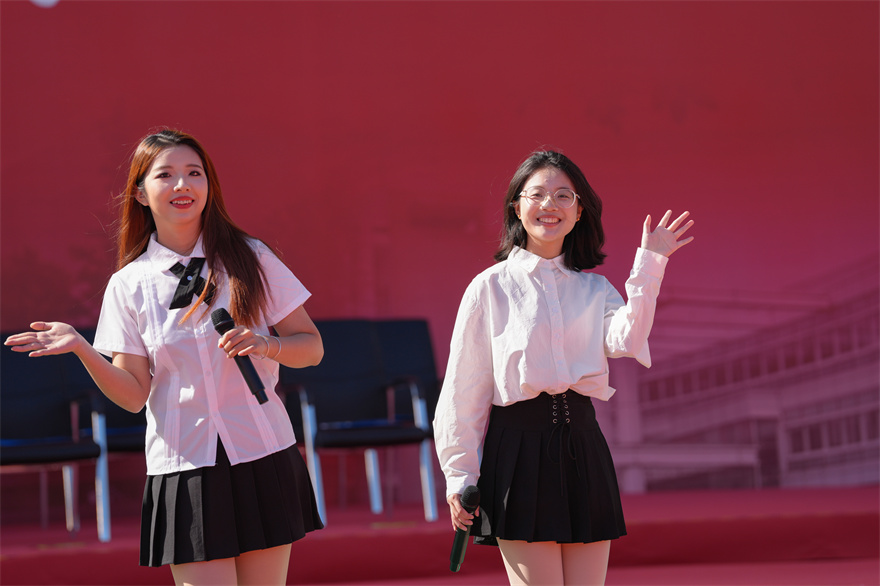 校友代表、英文学院2021届毕业生张冉细数在广外的奋斗与成长时光,向母校、父母、师长、挚友表达感恩之情。她表示,广外是我们一生中永远的家,不仅要常回家看看,也要常和旅人讲讲我们的家,期待下次再相聚。