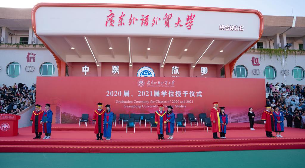 金秋时节,重逢有期。11月18日下午,白云山校区综合体育场格外热闹温馨,学校在58周年校庆之际郑重兑现承诺,为2020届、2021届毕业生补办了一场盛大的学位授予仪式。4200余名校友跨越山海,再聚云山,与母校“双向奔赴”,共赴这场青春之约。校党委书记石佑启,校长闫相斌,校领导、主礼教授为毕业校友拨穗授礼并合影留念,寄语同学们不忘广外路、坚守广外心、赓续广外情,续写更加精彩的人生华章。