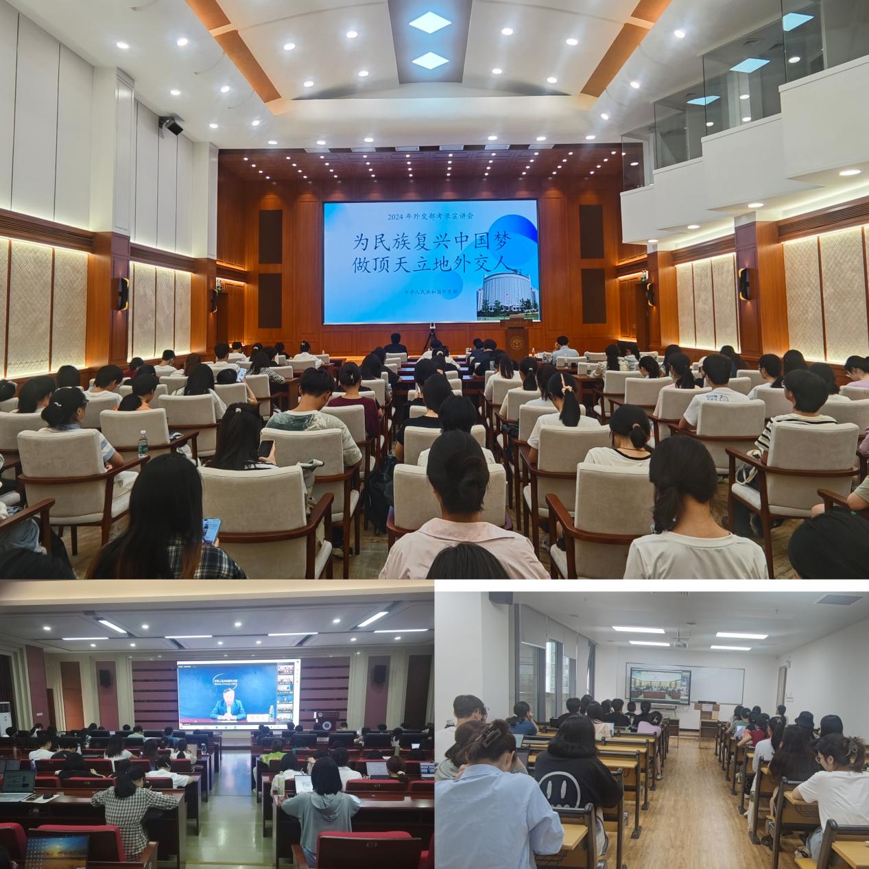 外交部干部司刘原辰对外交部考录政策进行了详细介绍,主要涉及报考流程、招考职位、职业发展、福利待遇等关键信息。在互动环节,细致解答同学们的提问,并鼓励大家积极报考外交部。外交部干部司考录培训处一秘李建军等出席活动。