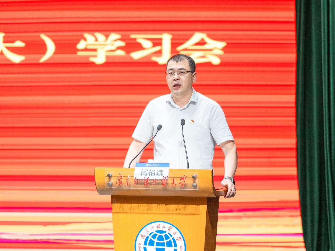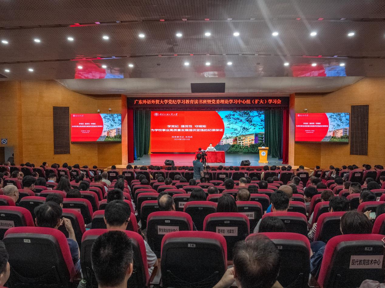 5月23日,伟德国际1946党纪学习教育读书班暨党委理论学习中心组(扩大)学习会在白云山校区六教报告厅召开。在开班仪式上,校党委书记石佑启讲授纪律党课,校长闫相斌主持会议,校党委常委、纪委书记温燕欢作党纪学习教育专题辅导报告。校党委理论学习中心组成员、校党委委员、纪委委员、副处职级以上干部,党政机关、教辅单位科长(主任),教学、科研单位办公室主任,后勤实体主要负责人,广州市实验外语学校、白云外国语中小学主要负责人参加学习会。