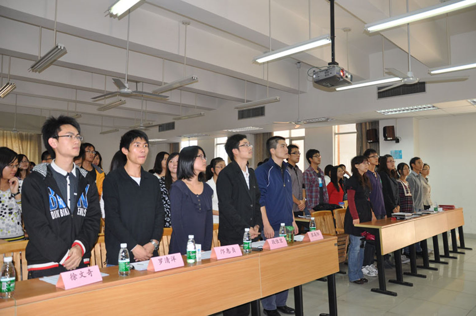 12月2日下午2点30分,2010届研究生主题团日活动评优大会在南校区教学楼G207隆重举行。大会在庄严的团歌中开始,南北校区18个团支部参加了此次大会,展示支部支持亚运,参与亚运,服务亚运的风采。莅临现场的评委嘉宾有苏高阳老师和前任研究生学生会干部。