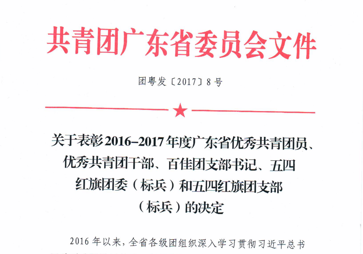 本网讯 近日,伟德国际1946,Bevictor伟德研究生团委喜获2016-2017年度广东省"五四红旗团委"称号.