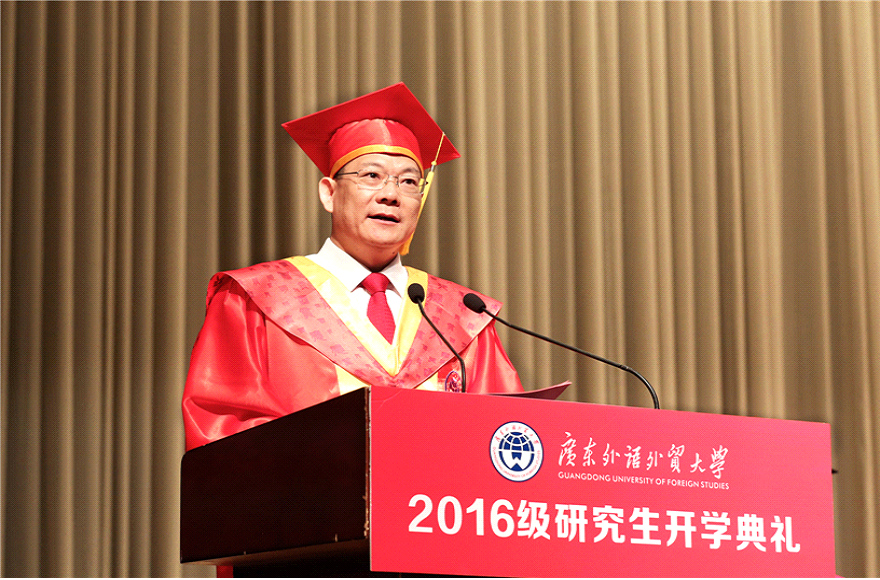 研究生导师代表魏在江建议16级研究生们勤于阅读,注重阅读量的积累,化被动为主动,由量变到质变;勤于思考,提升专业精神和分析、解决问题的能力;勤于写作,努力提高写作能力,勇于在专业期刊和学术会议上展现观点,“不唯上,不唯书,只唯实”。他希望同学们在为学的道路上发扬女排精神,坚持奋斗;勇于创新,探索研究的快乐;在广外开开心心,收获满满。