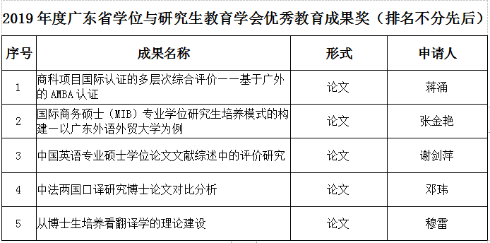 据悉,广东省学位与研究生教育学会优秀教育成果奖是今年首次设立,全省共评选出40项优秀成果奖,是目前我省学位与研究生教育领域的专项奖项之一。其设立目的旨在深化研究生教育改革与创新,促进研究生教育的内涵式发展,奖励在研究生教育理论与教育教学实践中开拓创新、取得显著成绩的个人或集体。