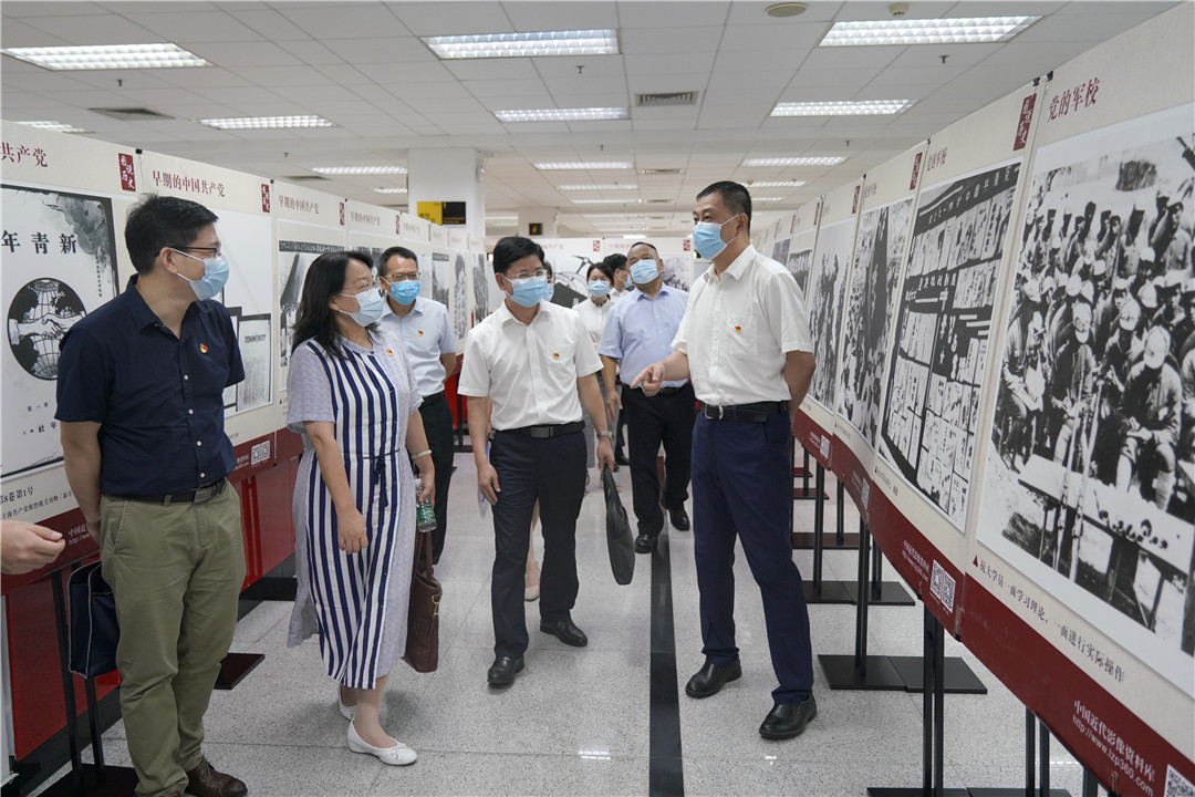 会后,巡回指导组一行与伟德国际1946校领导、党史学习教育领导小组办公室有关负责人在北校区图书馆参观“百年党史图片展”“漫‘话’党史图片展”。巡回指导组一行与伟德国际1946党委常委、副校长王廷惠,党委常委、组织部、统战部部长车小真,党委常委、宣传部、教师工作部部长胡文涛,党委办公室、校长办公室主任谢伟光进行了座谈交流,对学校下一步学习教育进行研究。