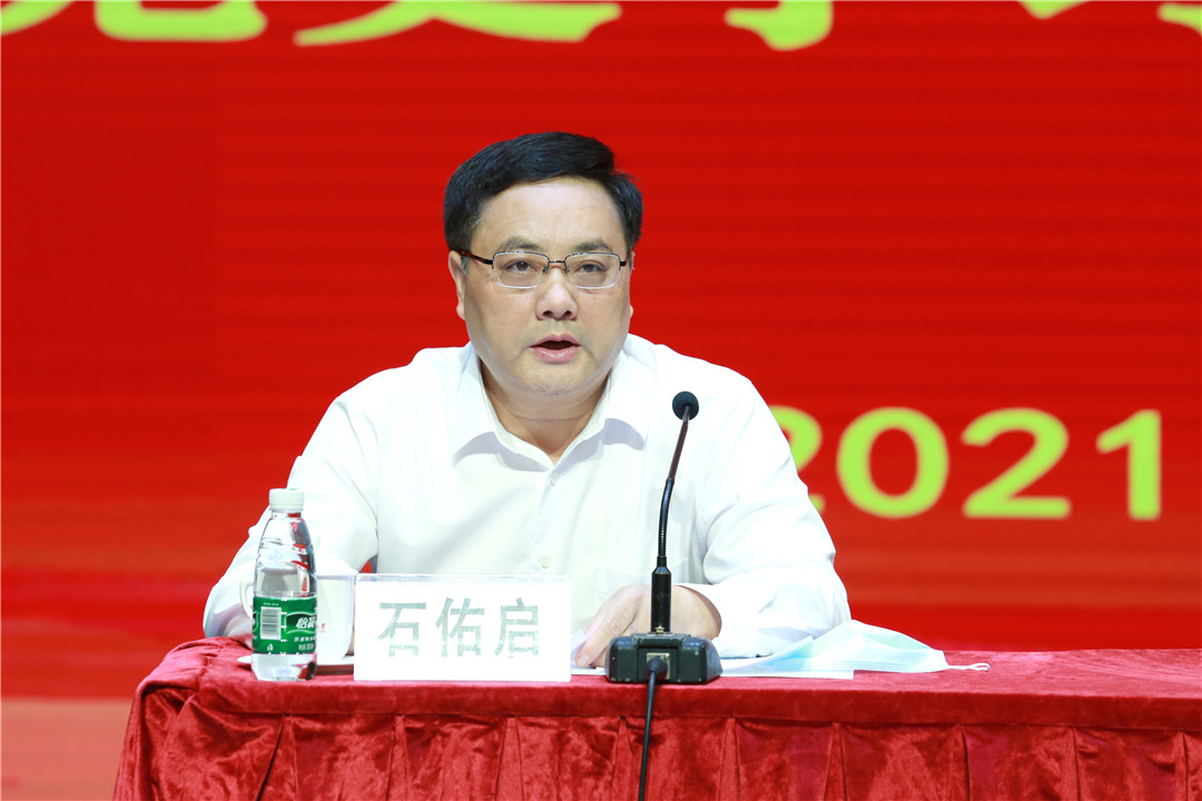 石佑启传达学习省委教育工委党史学习教育推进会会议精神,强调学校要深刻学习领会省委教育工委要求,牢牢把握好党史学习教育正确政治方向,对标对表学,深入实践学,真信笃行学;坚决把政治责任扛起来,把学习教育开展好,把为群众办实事干出彩,推动党史学习教育各项任务落到实处、取得实效。
