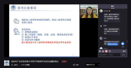 为满足广大考生和家长咨询需求,搭建考生、家长与院校沟通桥梁,7月4日-7月17日,由研究生院牵头组织各研究生招生单位开展“伟德国际1946,Bevictor伟德2022年研究生招生直播咨询会”,共设置了英文学院、经贸学院、商学院、会计学院、金融学院、西语学院、日语学院/亚非学院(筹)、中文学院、法学院、公管学院、翻译学院、新闻学院、战略研究院及国别和区域高等研究院等13个专场活动,每场直播持续1个小时左右,累计观看量超过5万次。