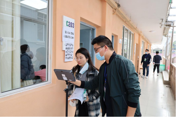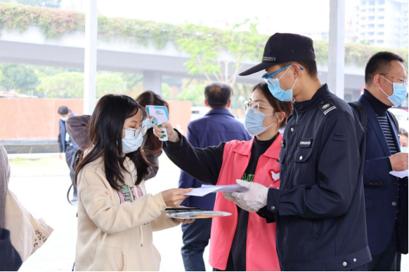 为落实疫情防控要求,实现“应考尽考”目标,学校建立并完善了考前、考中突发疫情应急响应机制。在考前充分排查了考生健康状况,第一时间掌握涉疫考生信息,对于异常情况早发现、早沟通、早处理,及时回应考生诉求。同时,学校还制定了考试防疫指引和防疫突发事件处理办法,考前协同白云区疾控中心、黄石街道办进行防疫演练,协同“平移考点”广东工贸职业技术学院就试卷转运、考生转移等关键环节进行沟通演练,认真落实“一考点一方案”。通过“粤康码”、考前14天健康申报、核酸检测、设置隔离考场等举措,筑牢织密防控网络,切实保障师生安全和身体健康。