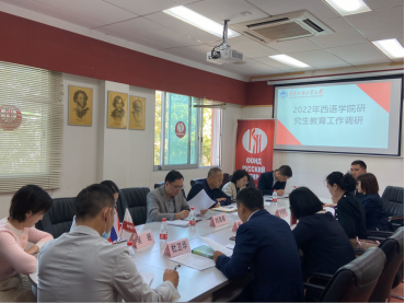 西方语言文化学院院长杨可,副院长杜卫华、茅银辉等参加了调研会。学院相关负责人主要介绍了二外公共课教学、研究生分类培养、招生考试改革、非通用语种博士生招生和导师队伍建设、课程教材创新、疫情防控、思政队伍建设等的举措和建议,现场人员就存在的问题交换了意见。刘海春副校长表示,学院要做好规划和协同,着力发挥优势补短板,稳步推进各项改革举措,打造多语种教材建设体系。同时,学院应充分发挥师资力量,努力培养高层次外语人才。