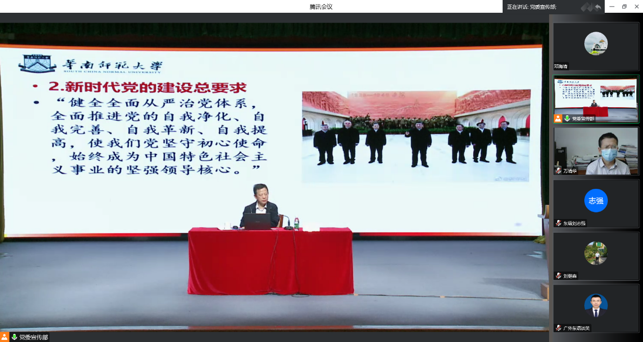 在党委理论学习中心组学习(扩大)会议上,华南师范大学马克思主义学院院长陈金龙作专题辅导。陈金龙以“以全面建设社会主义现代化国家的行动纲领”为题,紧紧围绕党的二十大的主题主线和主要内容,从深刻认识党的二十大的主题、主要成果,过去五年和新时代十年的伟大变革,习近平新时代中国特色社会主义思想开辟马克思主义中国化时代化新境界,中国式现代化的新论断,全面建设社会主义现代化国家的目标任务,坚持党的全面领导和全面从严治党,前进道路上的风险挑战等七个方面进行了讲解。他阐述了习近平新时代中国特色社会主义思想的世界观和方法论的基本内容,并对何为中国式现代化、如何在前进道路上坚持党的全面领导和从严治党进行了深刻分析。他指出,广大党员要充分认识“三个务必”、“五个必由之路”的深刻内涵,把习近平新时代中国特色社会主义思想作为实现全面建设社会主义现代化国家、全面推进中华民族伟大复兴而奋斗的行动指南。