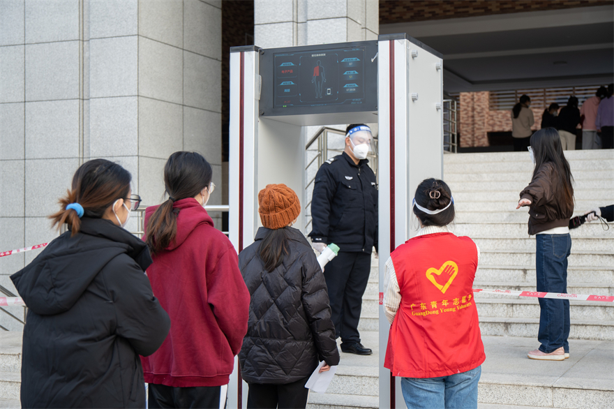 作为加强考试安全管理的新手段,今年学校新增安检门和“电子哨兵”,通过人脸识别或刷身份证就可以验证考生身份,大大提升了考生通行效率,同时实现精准核验,高效把控。新增5G信号屏蔽仪,确保屏蔽无死角,严防考生携带手机等通讯设备进入考点实施作弊。