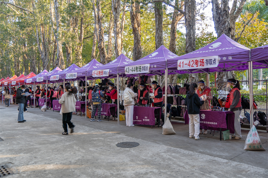 志愿者为考生提供行李保管服务
