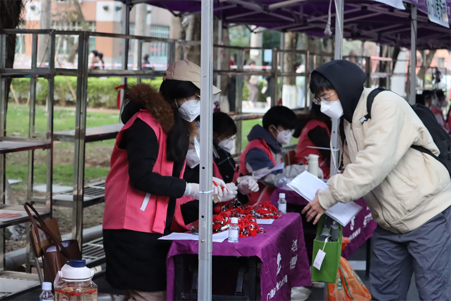 希伯来语专业志愿者萧海琳担任志愿者期间,遇到了突发状况,在给考生准备的备用铅笔,但没准备削笔刀。她立刻以最快的速度跑回宿舍翻出卷笔刀,再次赶回场地给考生递上了备用铅笔。负责发放防疫物资的志愿者,中文专业刘茜提到让她印象最深刻的是,每当一个岗位有空缺,很快就有人补上,她真切感受到了大家做志愿者的热情和激情。许多志愿者目前还在期末备考中,但想到能为他人提供帮助,他们就觉得非常有意义。