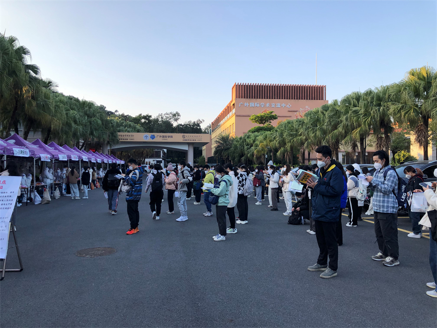 今年考研也被誉为“史上最难”,除了是历年来人数最多的一年外,还面临着新冠疫情传播速度快的特点,考生仍需要做好个人防护,保持最佳的考试状态,以及随时做好因为疫情带来的一系列考试调整的准备。根据要求,核酸异常考生、密接考生应在考前、考中和考后全程佩戴好N95口罩。尽管困难重重,广外人的温暖永不迟到,寒风凛冽,温情仍抚慰人心。