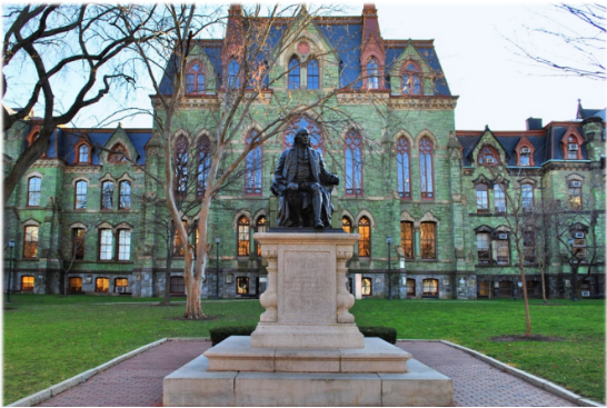 宾夕法尼亚创建于1740年,著名的“常春藤联盟”之一,位于美国的历史名城费城,是美国第四古老的高等教育机构,也是美国第一所现代意义上的大学。