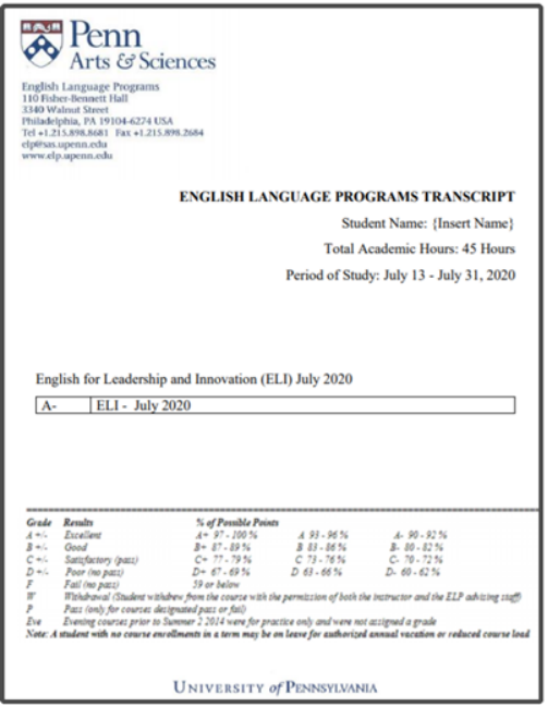 考核内容包括学生课堂的积极参与度、写作及阅读作业完成情况、回答问题、围绕课程主题的小测验等。顺利完成所有在线课程并通过考核后,学生们可获得宾夕法尼亚大学颁发的成绩单与学习证明。
